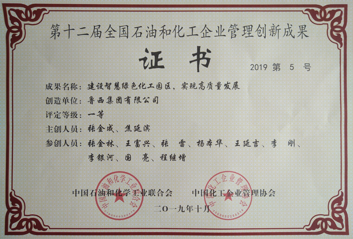 大會發(fā)布了管理創(chuàng)新成果獎105項,其中一等獎33項、二等獎53項、三等獎19項。魯西集團(tuán)申報的“建設(shè)智慧綠色化工園區(qū),實(shí)現(xiàn)高質(zhì)量發(fā)展”被評為管理創(chuàng)新成果一等獎。