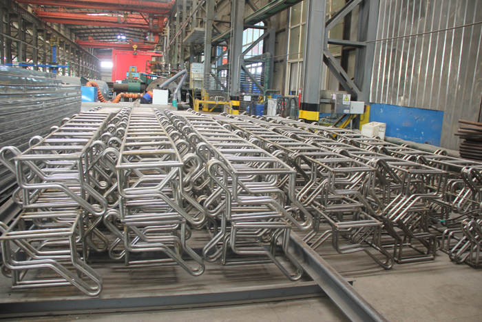 在廠房內(nèi)看到幾處擺放整齊的自行車駐車器光潔瓦亮,與之前的廢舊設(shè)備形成鮮明的對比。陪同人員告訴記者,這些駐車器全部是用拆解再利用的不銹鋼換熱管,經(jīng)過酸洗鈍化后制作而成的。為了使這些拆解的不銹鋼換熱管能夠發(fā)揮最大的價值,事業(yè)部拆解的不銹鋼換熱管優(yōu)先用于設(shè)備制作,其次再用于駐車器、氣源管、穿線管、護(hù)欄等。這是第一批駐車器,這批自行車駐車器總計是三千多個車位,目前已安裝使用一千個車位,使用效果良好。