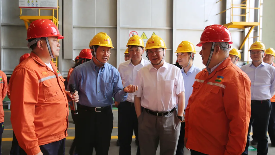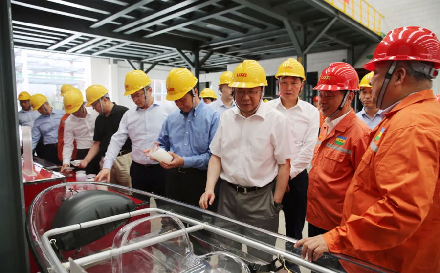 領(lǐng)導(dǎo)一行先后參觀了園區(qū)重型裝備、應(yīng)急救援中心、尼龍6和聚碳酸酯包裝現(xiàn)場、廢水零排放、氣化爐、固廢處置現(xiàn)場、技術(shù)中心大樓和展廳。領(lǐng)導(dǎo)一行進(jìn)車間、看現(xiàn)場、聽介紹,和員工攀談?,F(xiàn)場了解了化工工程裝備的強(qiáng)大制造能力,吸收再創(chuàng)新能力和先進(jìn)的自動化水平;觀看了魯西應(yīng)急消防設(shè)施配備和應(yīng)急隊(duì)員綜合科目訓(xùn)練展示;了解了尼龍6和聚碳酸酯的產(chǎn)能、技術(shù)水平、下游產(chǎn)品和市場前景,以及氣化爐的核心技術(shù)優(yōu)勢;聽取了關(guān)于園區(qū)零排放目標(biāo)實(shí)施,建設(shè)綠色化工園區(qū)、智慧化工平臺建設(shè)和較高資質(zhì)設(shè)計(jì)能力的匯報(bào);并且通過參觀展廳,細(xì)致了解了集團(tuán)的發(fā)展歷程、目前的發(fā)展?fàn)顩r和未來的發(fā)展規(guī)劃。