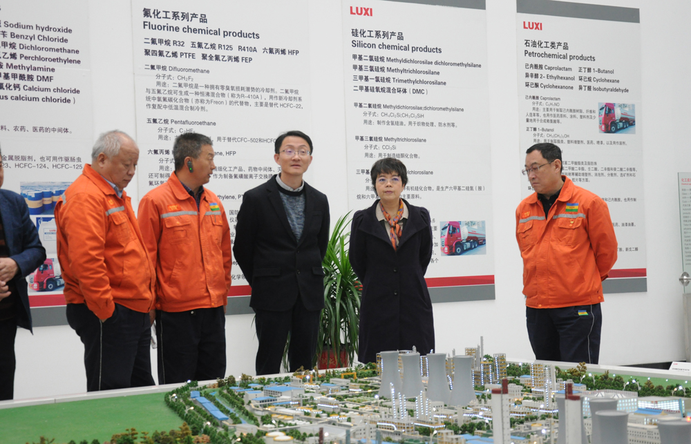 領(lǐng)導(dǎo)一行先后深入到重型裝備制造廠房、電氣儀表車間、氟材料裝置、甲烷氯化物裝置、實訓(xùn)基地、運(yùn)行指揮中心以及產(chǎn)品展廳進(jìn)行了實地參觀。馬總、李總一行對魯西集團(tuán)的快速發(fā)展以及強(qiáng)大的園區(qū)管控和工程化能力給予高度贊賞。