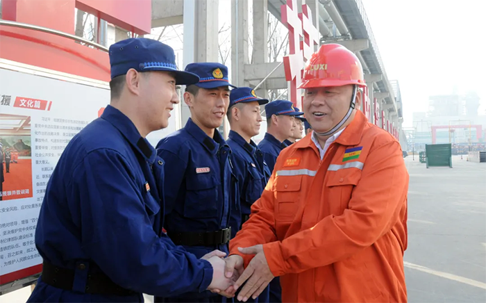 金牛奮蹄踏春來(lái),2月11日,大年三十上午9點(diǎn),集團(tuán)黨委書(shū)記張金成深入園區(qū)生產(chǎn)一線、項(xiàng)目建設(shè)現(xiàn)場(chǎng)、應(yīng)急救援中心、后勤保障部門(mén),看望慰問(wèn)堅(jiān)守崗位的干部員工,向大家親切拜年,致以美好的新春祝福,祝福大家過(guò)年好,闔家幸福!牛年吉祥!祝愿企業(yè)蒸蒸日上!牛年興旺! 送去了集團(tuán)黨委和集團(tuán)公司的關(guān)懷和慰問(wèn)。