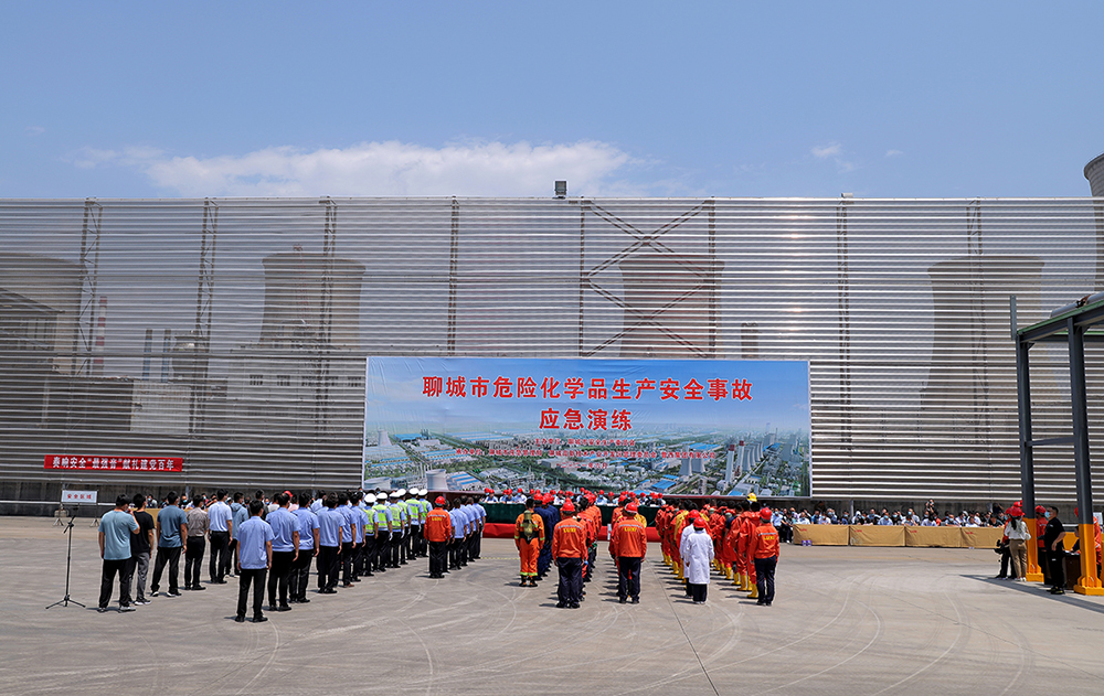 6月21日,由聊城市安全生產(chǎn)委員會(huì)主辦,聊城市應(yīng)急管理局、高新區(qū)管委會(huì)和魯西集團(tuán)承辦的聊城市2021年危險(xiǎn)化學(xué)品生產(chǎn)安全事故應(yīng)急演練,在煤化一事業(yè)部舉行。聊城市副市長劉文強(qiáng),市政府副秘書長候德功,高新區(qū)黨工委副書記、管委會(huì)副主任郭志剛等領(lǐng)導(dǎo)蒞臨指導(dǎo),魯西集團(tuán)黨委書記、總經(jīng)理張金成陪同活動(dòng)。各縣市區(qū)專家、企業(yè)負(fù)責(zé)人及相關(guān)領(lǐng)導(dǎo)140余人現(xiàn)場(chǎng)觀摩活動(dòng)。