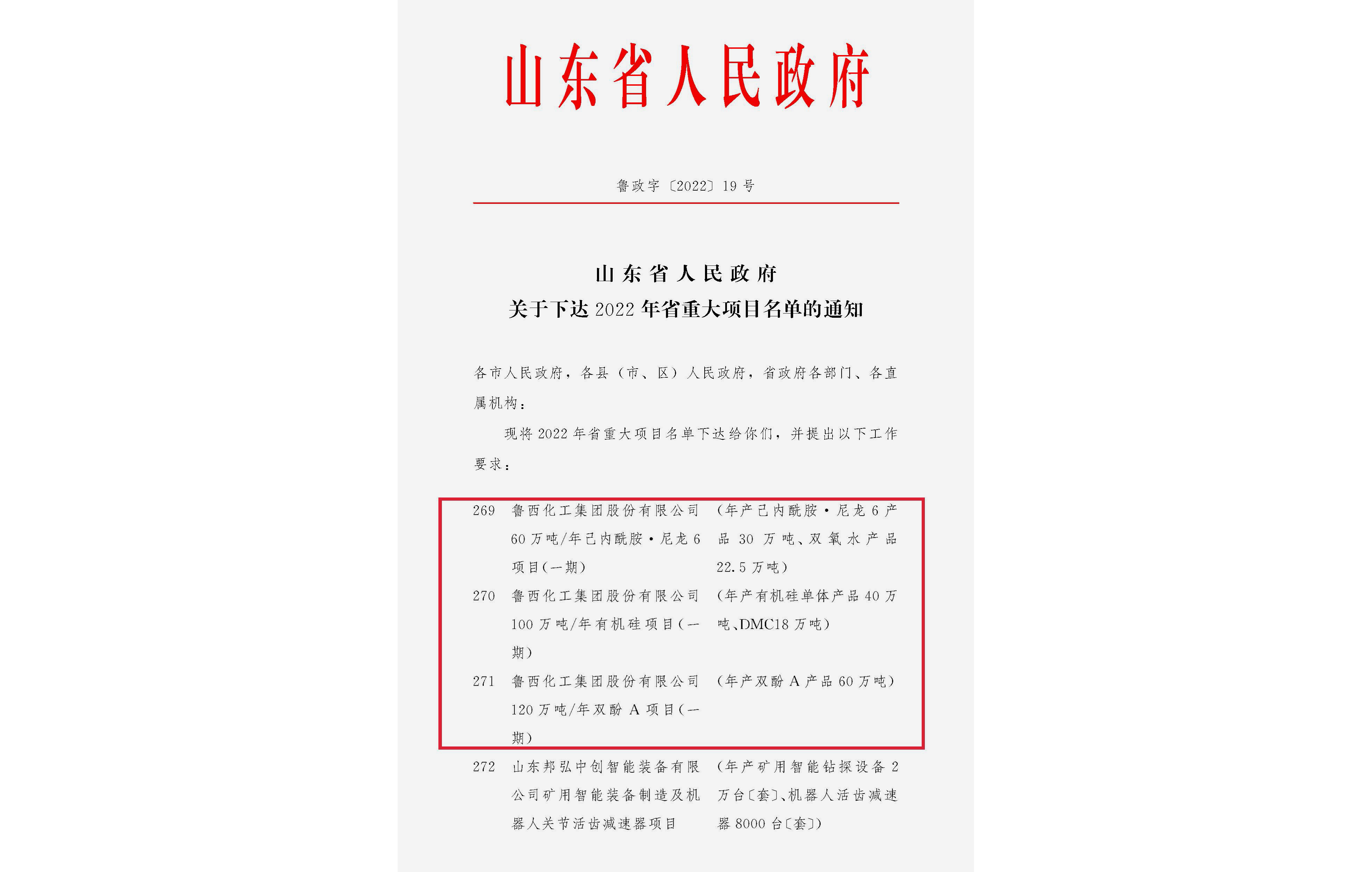 日前,山東省人民政府公布了2022年省重大項目名單,共包括373個實施類項目、127個儲備類項目。魯西集團60萬噸/年己內(nèi)酰胺·尼龍6項目(一期)、100萬噸/年有機硅項目(一期)、120萬噸/年雙酚A項目(一期)3個高端化工和化工新材料項目入選省重大項目名單。