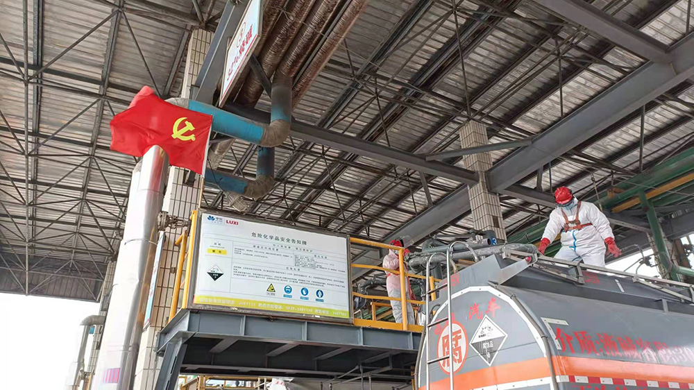 為落地執(zhí)行“外部司機(jī)不下車”的防控要求,魯西集團(tuán)下屬黨組織液體裝卸部黨支部在防疫預(yù)案啟動(dòng)后駕押人員不下車,工作量增加的情況下,為確保裝卸工和外協(xié)幫扶人員思想穩(wěn)定、操作安全,設(shè)立黨員服務(wù)流動(dòng)崗。黨支部書記帶領(lǐng)黨員干部深入裝卸現(xiàn)場(chǎng),發(fā)揮黨員模范帶頭作用,對(duì)裝卸量較多的崗位進(jìn)行黨員輪替定點(diǎn)幫扶,黨旗高高飄揚(yáng)在裝卸現(xiàn)場(chǎng)崗位,為員工鼓勁加油,共闖疫情難關(guān)。