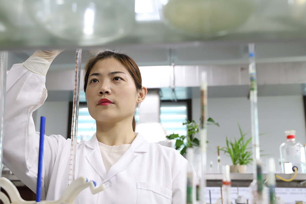 左手控制滴定管,右手握持化驗(yàn)瓶,動作輕柔利落、表情專注從容,一滴、二滴……溶液顏色逐漸變化,確認(rèn)滴定完畢,讀數(shù)、記錄,全過程精確把握、一氣呵成。