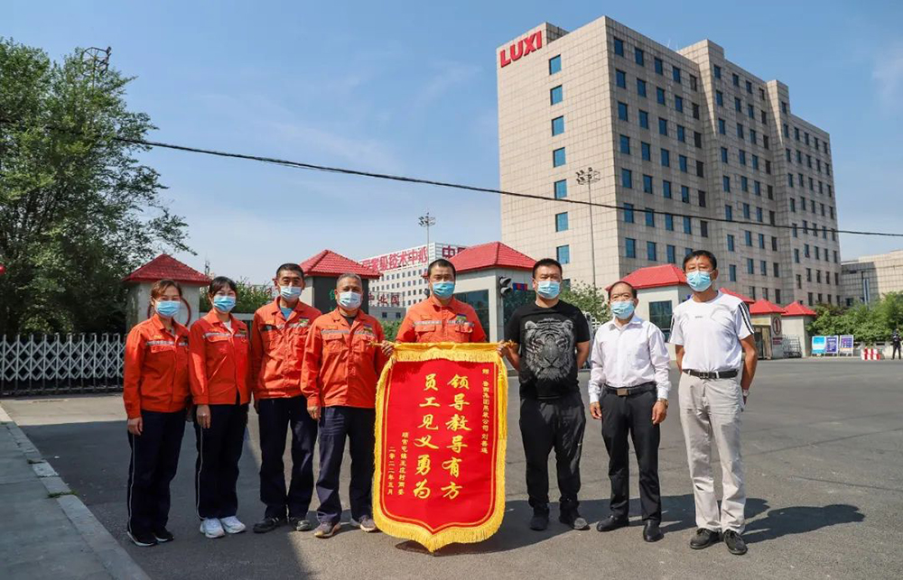 “已經(jīng)出院了,老人的精神狀態(tài)不錯(cuò)?!蓖鯐浭潜痪壤先怂诖宓拇逯Р繒洠邮苡浾卟稍L時(shí),他剛從老人家出來(lái),“老太太已經(jīng)60多歲了,要不是劉善連,后果不堪設(shè)想,慢一分鐘都不行!” “當(dāng)天被救人家屬就給我們村委打電話,讓我們幫忙找救命恩人”,王書記說(shuō),“當(dāng)時(shí)有我們的村民在現(xiàn)場(chǎng),多方詢問(wèn)才知道,是我們鄰村人劉善連,在魯西上班。”5月23日,村兩委受被救人家屬委托,將寫著“領(lǐng)導(dǎo)教導(dǎo)有方 員工見(jiàn)義勇為”的錦旗送到了魯西集團(tuán)劉善連的手中,表達(dá)了萬(wàn)分感謝之情。