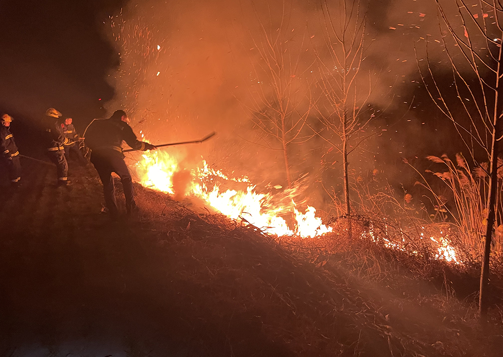 針對這一情況,指揮人員立即對著火區(qū)域進行劃分,救援人員每人負責一片區(qū)域,使用鐵鍬、打火鞭等工具對著火物質進行撲救,在大家的共同努力下,經過50多分鐘的緊張救援,火勢終于被完全撲滅。
