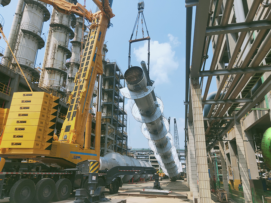 比如甲胺項(xiàng)目的14臺(tái)高塔,直徑大、高度高、保溫厚,現(xiàn)場(chǎng)場(chǎng)地狹小,設(shè)備倒運(yùn)及吊裝難度較大,且脫氨塔、分離塔、脫水塔、甲醇回收塔必須分段吊裝,加大了施工難度。為保障四臺(tái)高塔順利吊裝就位,事業(yè)部上下齊心,堅(jiān)持“一盤(pán)棋”思想,將四臺(tái)高塔每一段平臺(tái)爬梯及保溫任務(wù)分配至車(chē)間及安裝隊(duì),編制詳細(xì)施工、倒運(yùn)、吊裝及對(duì)口計(jì)劃。全過(guò)程黨員干部現(xiàn)場(chǎng)帶領(lǐng)員工加班加點(diǎn),保證各環(huán)節(jié)無(wú)縫銜接。最終順利完成甲胺項(xiàng)目高塔設(shè)備一體化、模塊化吊裝,為后續(xù)設(shè)備和管道安裝奠定了基礎(chǔ),鼓舞了士氣。