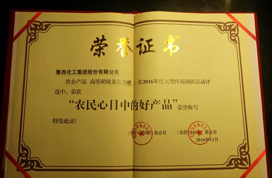 峰會(huì)開幕后便公布了萬眾注目的“農(nóng)民心目中的好產(chǎn)品”獲獎(jiǎng)品牌產(chǎn)品名單。魯西集團(tuán)生產(chǎn)的高塔硝硫基復(fù)合肥以較高的網(wǎng)絡(luò)人氣和農(nóng)戶滿意度再次榮獲“農(nóng)民心目中的好產(chǎn)品”榮譽(yù)稱號(hào)。