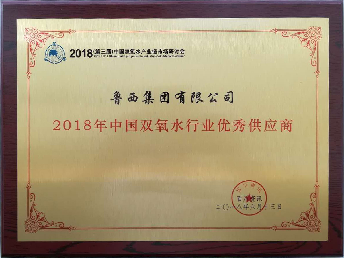2018年(第三屆)中國雙氧水產(chǎn)業(yè)鏈?zhǔn)袌鲅杏憰?huì)于6月中旬在江蘇無錫召開。會(huì)上,魯西集團(tuán)榮獲《2018年中國雙氧水行業(yè)優(yōu)秀供應(yīng)商》獎(jiǎng)牌。