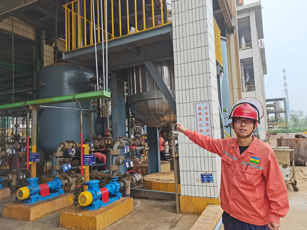 當走到不遠處的一套正在運行的塔罐機泵前,一位年輕的員工興致勃勃的說:“這是一套廢料回收系統(tǒng),它的主要作用是把系統(tǒng)內無法處置的廢料集中重新過濾吸收,進行循環(huán)再利用。其中除了部分螺絲螺栓外,所有的設備、管線都是利用集團其他裝置上一些閑置或者淘汰的廢舊設備、管線進行改造的,完全由我們自主設計、自主施工、自主調試投運,現(xiàn)在已經投入使用兩個月了,從前沒法處置的廢料現(xiàn)在經這套系統(tǒng)回收處理后全部達到循環(huán)再利用,運行效益不計,僅技改成本,就節(jié)省了近100萬元!”