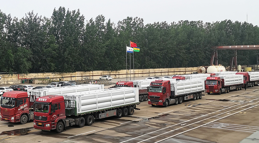 在目前疫情嚴峻的形勢下,魯西新能源裝備創(chuàng)新銷售模式,充分利用目前國內外交流平臺進行市場開發(fā),針對大客戶訂單,領導干部帶頭攻關。本次秘魯-杰瑞美洲CNG發(fā)電項目共采購管束式集裝箱32臺,魯西新能源裝備依托良好的行業(yè)口碑和品牌影響力順利中標,并于2021年6月23日至24日發(fā)貨14臺,8月12日至14日發(fā)貨18臺。至此,所有產品全部按客戶要求交付,提升了品牌影響力。