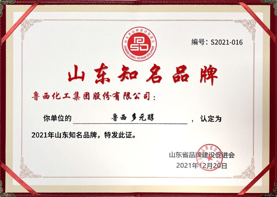 近日, 山東省品牌建設(shè)促進(jìn)會(huì)在品牌年會(huì)上發(fā)布2021年度山東知名品牌認(rèn)定名單,魯西集團(tuán)“多元醇”產(chǎn)品榜上有名,榮獲“山東知名品牌”。